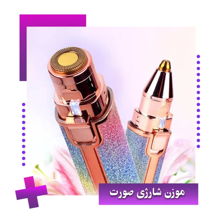 موزن و شیور شارژی دو کاره لاکچری با طراحی شاین و بدنه رنگینکمانی فوقالعاده جذاب مناسب برای اصلاح صورت و ابرو دارای چراغ LED برای دید بهتر کوچک و قابل حمل برای کیف لوازم آرایش دیگه نیازی به بند انداختن نیست!